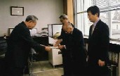 平成16年2月20日、3町村長が合併協定調印書へそれぞれ調印、同年2月23日、3町村の議会臨時会で町村の廃置分合などの合併関係議案を議決しました。